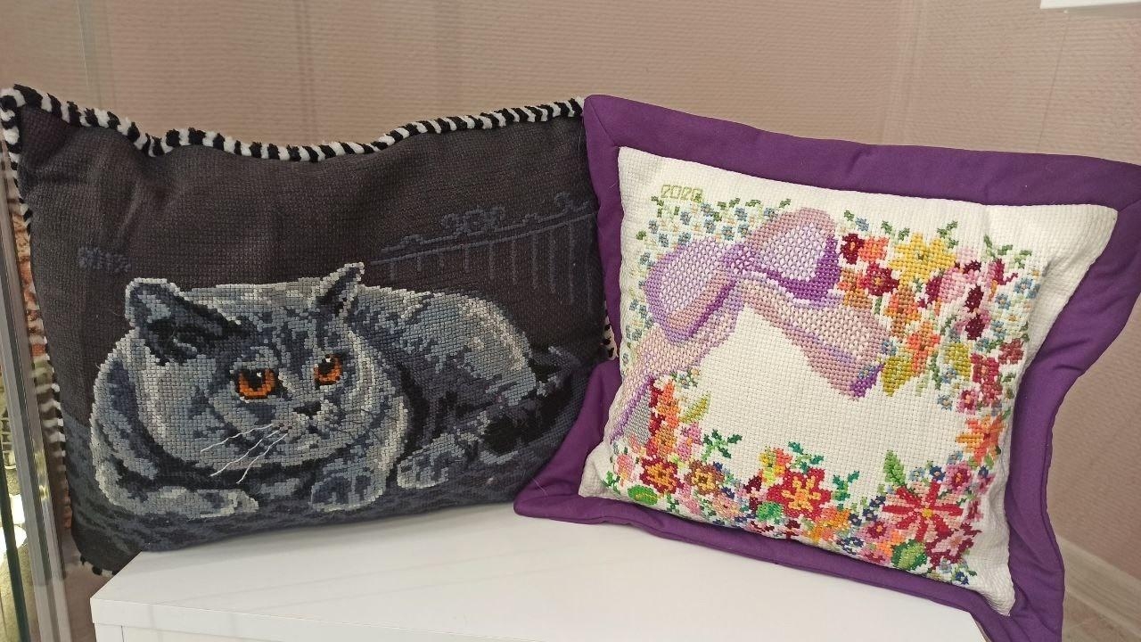 Наталья Владимировна посвятила вышивке около десяти лет. Однажды, когда для картин закончилось место, она нашла новое, удивительное применение своему таланту – вышивке на подушках. Ее работы поражают разнообразием сюжетов: от изящных узоров и нежных цветов до ярких изображений животных. Особое внимание привлекают подушки в форме гитары, мудрой совы и жизнерадостной черепахи.