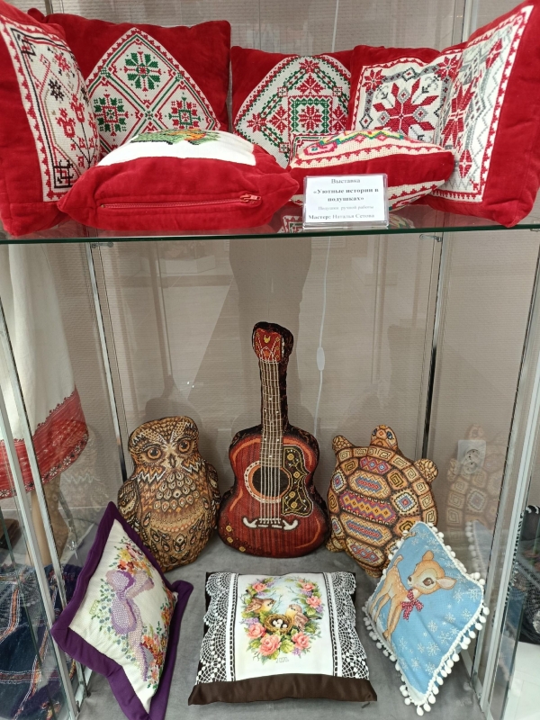 Приглашаем всех в культурно-выставочный центр посетить выставку «Уютные истории в подушках», представляющую работы талантливой мастерицы из Калуги – Натальи Владимировны Сетовой.
