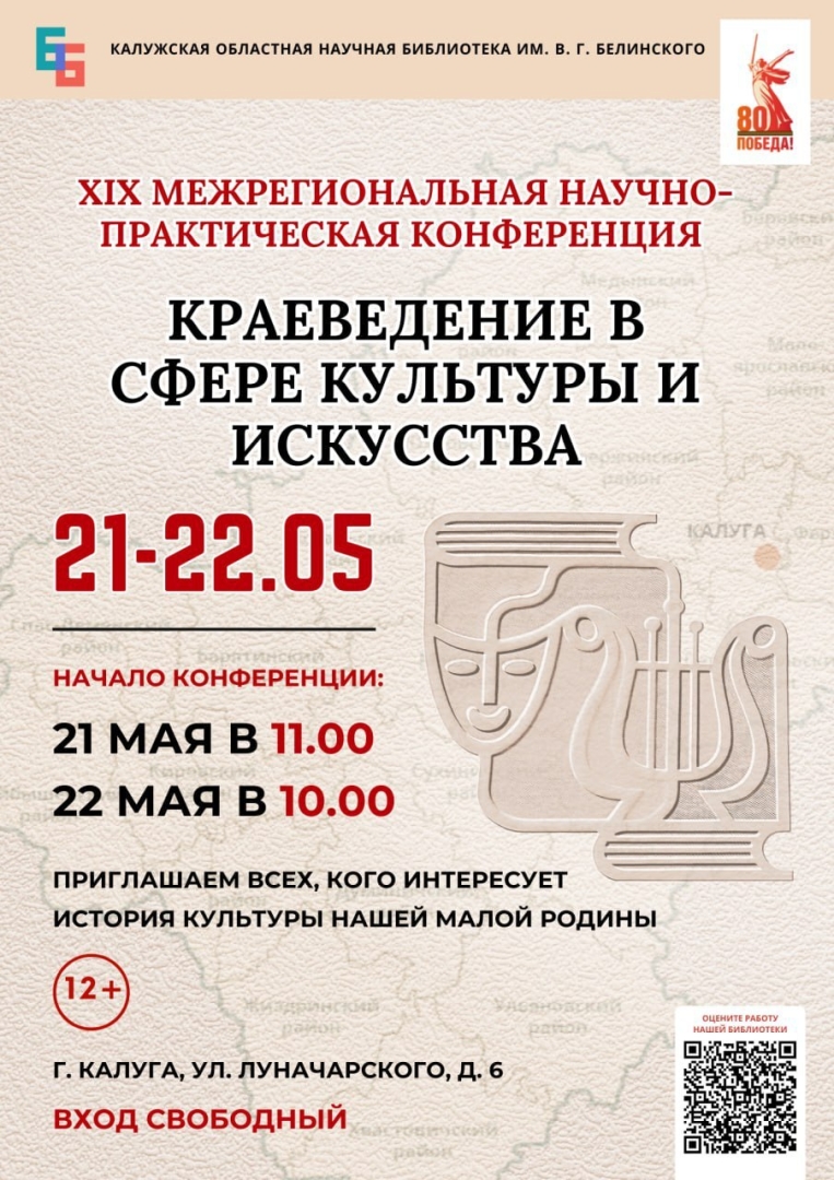 Приглашаем всех, кого интересует история культуры Калужского края, на XIX межрегиональную научно-практическую конференцию «Краеведение в сфере культуры и искусства».