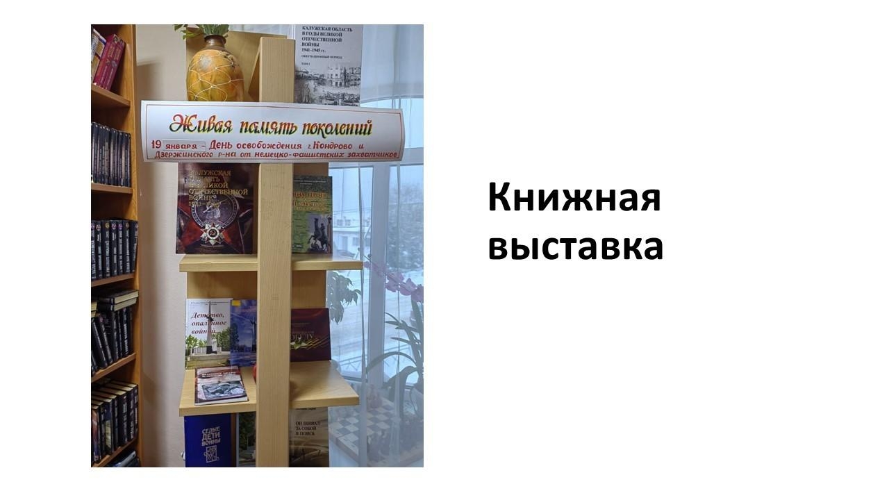 На абонементе Центральной библиотеки открылась книжная выставка, приуроченная ко Дню освобождения нашего родного города Кондрово от немецко-фашистских захватчиков.