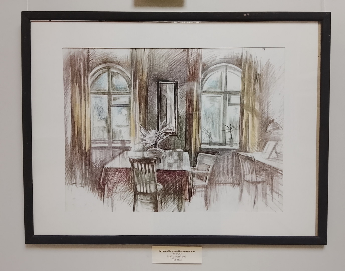 Наталья Китаева в своем графическом триптихе «Мой старый дом», предлагает зрителю заглянуть в уютные комнаты старого дома, наполненные мягким светом и тишиной, которые так точно удается передать мастеру. В лаконичных и выразительных зимних деревенских зарисовках серии «Забытые адреса» Максима Алексеева, выполненных, как правило, по натурному материалу, остро ощущается свежий морозный воздух и дремлющая под спудом снега вековая мудрость родной земли. Заслуженный художник РФ Валентин Денискин, работающий многие годы над сохранением в искусстве памятников старины Калужской земли, представил в этот раз графическую серию «Абрамцево». Это дань художника месту с особой творческой атмосферой, всегда привлекавшей представителей русской интеллигенции.