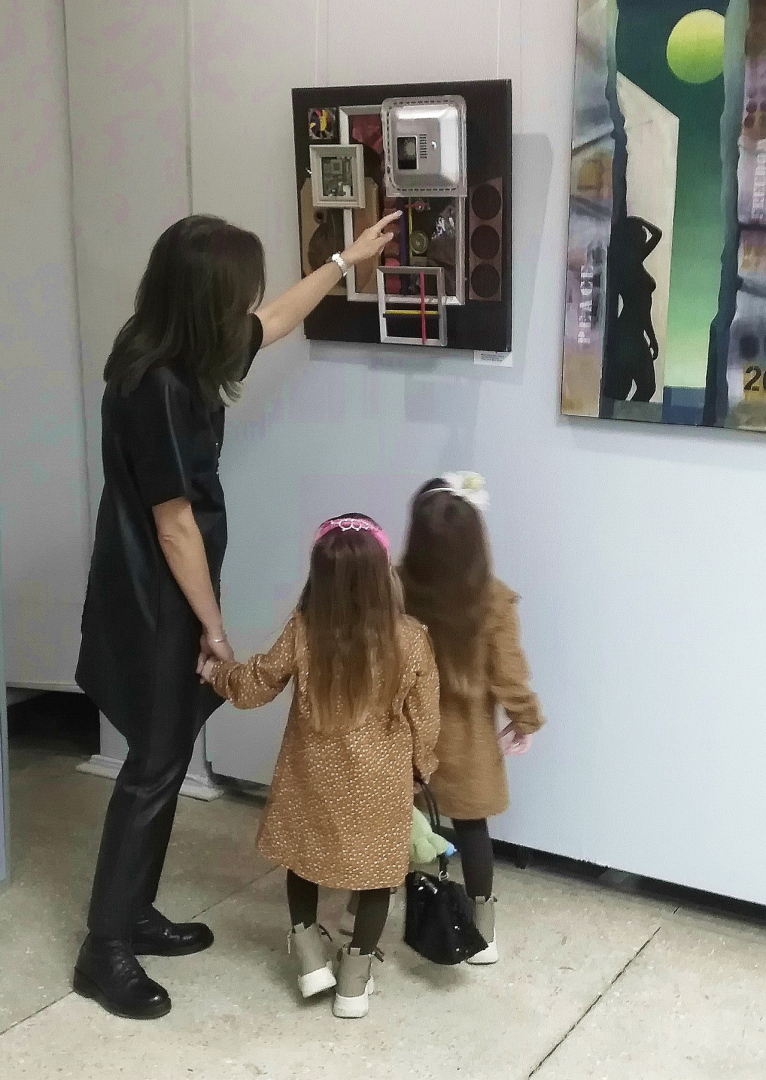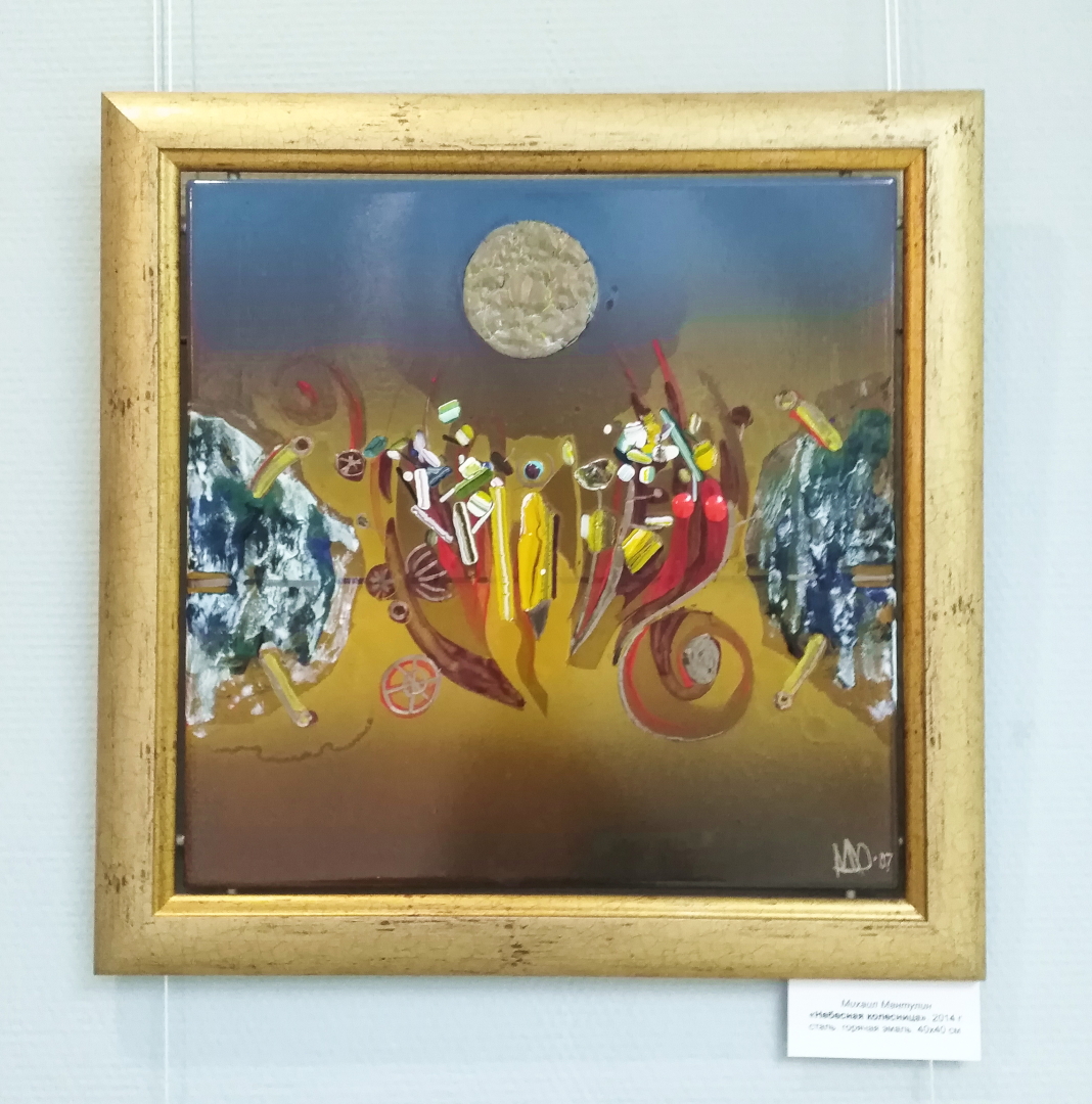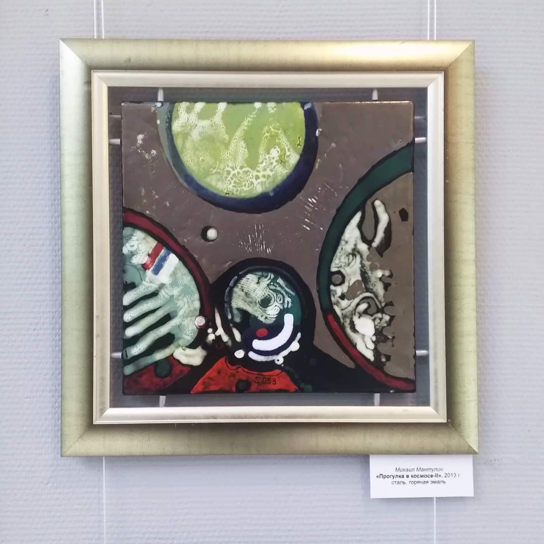 На выставке представлено около пятидесяти работ разных периодов творчества мастера, среди них - эскизы реализованных в Калуге и городах Подмосковья средовых проектов, живописные полотна, объемные композиции, дополненные красками и материальными структурами, выполненные в технике ассамбляж, экспериментальные пробы с использованием технологически трудоемкой горячей эмали.