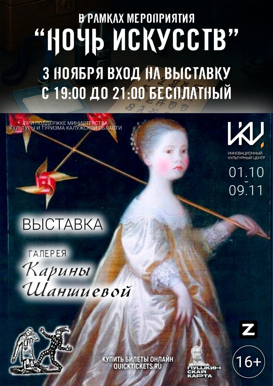 3 ноября, в рамках «Ночи искусств», мы открываем двери выставки «Галерея Карины Шаншиевой» для всех желающих абсолютно бесплатно!